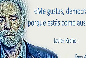 PERO ellos, los autodenominados «constitucionalistas» a esa Constitución que tienen siempre en la boca, a pesar de que la violan cada noche o a la luz del día, cual prostituta celestinesca, que después de cada ayuntamiento, le cosen el virgo para venderla como impoluta virgen. Nosotros los demócratas, pocas veces nombramos la democracia. Sabemos que no es democracia lo que en España tenemos. Es cierto, votamos; PERO, la democracia está como ausente, o tal vez, totalmente ausente. No son nuestros votos los que cuentan a la hora de decidir un gobierno, sino que son otros, que no se presentan a las elecciones quienes deciden. Y ellos, los presuntos demócratas, le ponen a la DEMOCRACIA mordaza, no vaya a ser que al pueblo le dé por cantar las cuarenta. Ellos, quienes se les llena la boca de democracia, quienes apelan a defender «NUESTRA DEMOCRACIA», en realidad están apelando a privar al pueblo de ella. Hasta quien con nocturnidad y alevosía fue designado, de espaldas al pueblo, jefe del Estado, en sustitución de otro, nombrado por un dictador, habla de democracia, de «NUESTRA DEMOCRACIA», sin que ni él, ni esos «demócratas constitucionalistas», reconozcan otra constitución y otra democracia que la suya, la que les protege de una Constitución y una Democracia, que realmente sea una Constitución democrática. Queremos una Constitución de verdad, que nos permita elegir a cada uno de nuestros representantes, desde el concejal rural, al presidente de la República, sin que sea el espermatozoide más rápido quien ocupe el cargo. Muchos años después de la muerte de Javier Krahe, sus palabras siguen vigentes:«Me gustas, democracia, porque estás como ausente»©Paco Arenas, autor de Magdalenas sin azúcar, la novela que según algunos profesores de historia deberían leer los jóvenes y todos quienes quieran conocer la verdad y que puedes leer aquí los primeros capítulos.