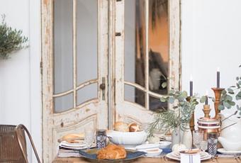 A mesa puesta, vemos que las piezas se amontonan, se solapan y casi hasta podrían agobiar, porque es cierto que el atrezzo en esta ambientación, juega tal papel que no deja espacio para disponer de bandejas, de cestas o de platos en los que picar, si no para mostrar y equilibrar una mesa donde lo importante es destacar y acompañar como si de un banquete imperial.