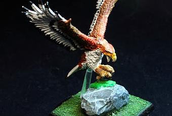 La primera miniatura de una de las águilas gigantes de la gama de El Señor de los Anillos salió en el Citadel Journal Spring 1986. Fue de las últimas figuras que se comercializaron de esta gama de mniniaturas fabricada bajo licencia. Su tamaño era mucho más pequeño que las Grandes Aguilas que se comercializaron el año pasado por estas fechas.Aproximadamente es del mismo tamaño que las posteriores Grandes Águilas de los Elfos Silvanos. Se comercializó bajo la referencia ME84 Great Eagle of the Misty Mountains.