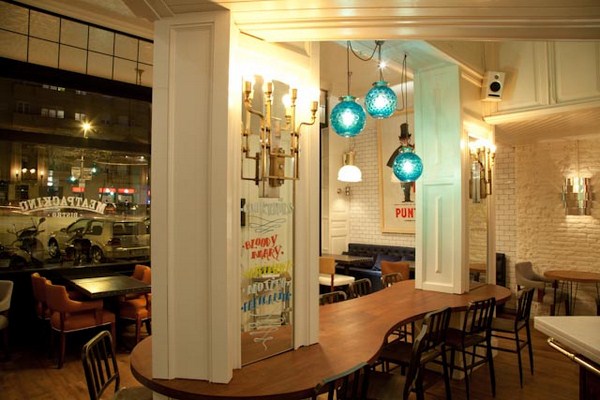 La madera es nuestro elemento dominante, bien pintada o en estado natural está presente en todo el interior del bistró aportando calidez con ayuda de una iluminación muy cuidada.