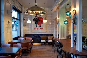 El café, también lugar de copeteo, está ambientado en una librería y nos ofrece otro concepto diferente para una misma marca. Teniendo como lazo de unión el blanco y la madera.