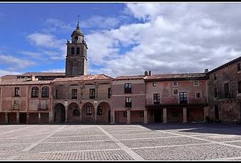 Volviendo a la localidad, su Plaza Mayor porticada, rectangular, en torno a los 5.000 metros cuadrados, típicamente castellana y construida sobre un foro romano está salpicada de curiosidades arquitectónicas.