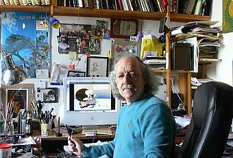 El material para 'la pira del humor' fue creciendo con los originales de sus viñetas y los paneles de la exposición...