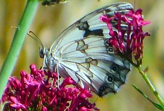 Esta mariposa se llama Melanargia . En España se le llama Medioluto ibérica… Eso de Medioluto no me gusta demasiado. ¿Por tener dibujos negros hay que llamarla Medioluto? Poca gracia de nombre, la verdad.