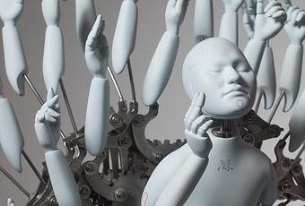 El artista sur-coreano Wang Zi Won construye complicadas figuras mecánicas de Buda y Bodhisattva que parecen perderse en la meditación o la iluminación. Las cifras de potencia eléctrica se fusionan con numerosos componentes mecánicos que a veces se asemejan a los halos de oro, flores de loto y al mismo tiempo las figuras humanoides se mueven con movimientos repetitivos.
