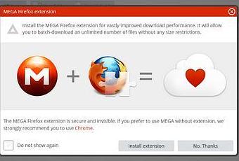 Firefox is now #MEGA. Install our extension and enjoy blazing transfer speeds. On your next visit you will get an option to install it