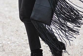 ONE by AlcantaraDouble Ring Fringe Evening BagDicen los que saben que cuando vemos más de tres marcas que presentan algo en común, ya es tendencia. Ginebra, Sarkany y Valdez nos proponen flecos en sobres y carteras. Y si bien no es una novedad su uso (hace varias temporadas que vemos carteras con flecos por las calles) esta vez se sube la apuesta y los flecos son XL.