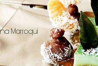 Se trata dehacer una gelatina de té verde a la menta, que acompañamos de una confitura demandarina amarga y unas trufas de dátil con almendra y nueces recubiertas decoco rallado, esta trufa, es un postre típico durante el Ramadán.