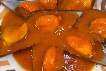 - 1/2 vaso del jugo que sueltan los mejillones al cocerse