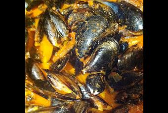 Cuando ya este el sofrito añadimos los mejillones y dejamos hasta que se abran .