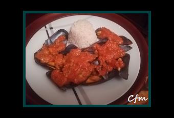 -Pasta con mejillones-Arroz blanco con mejillones-Arroz negro con marisco-Fideuá de marisco-Mejillones con salsa de tomate picante