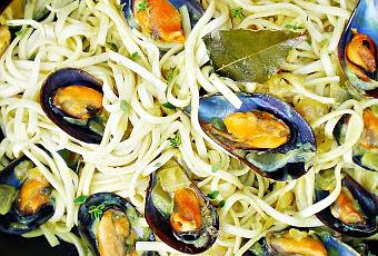 Tenía mejillonesy pensé en hacer un aperitivo para 2,mientas los hacía vi que tenía un montón de curry (ese es otro tema, hay que ver cuánto tengo en casa), luego al probar la salsa me dije… eso no es para aperitivo, le añado una pasta y tengo un plato para chuparse los dedos… y así nació este plato.