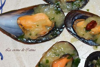 Los mejillones son moluscos de concha ovoide y color oscuro casi negro. Cualquiera que sea la forma de prepararlos, hay que rasparlos cuidadosamente y lavarlos bien. Se ponen en un recipiente a fuego vivo, sin agua, hasta que se abran. Debido a que en multitud de ocasiones los criaderos se encuentran en las aguas de los puertos, pueden contener microbios patógenos, por lo tanto se suelen vender depurados y con control de sanidad. En caso de duda, es conveniente añadir al agua soltada un poco de bicarbonato o vinagre. Conviene consumirlos muy frescos. Los mejillones se prestan a variadas preparaciones culinarias y son tiernos y sabrosos. Solos al vapor están buenísimos y si le añadimos una salsa como ésta, ya ni os cuento.Los mejillones existían ya hace 100 millones de años en las aguas costeras de la actual Región de Murcia, como queda demostrado en los fósiles localizados en el Parque Regional del El Valle de Carrascoy. De su consumo hay constancia en la Cueva de los Aviones, con restos del Paleolítico y en la Cueva de los Mejillones del Cabezo del Horno (Dolores de Pacheco, Los Alcázares). Hoy día se producen en Galicia a nivel comercial en las bateas de madera con cuerdas colgantes.