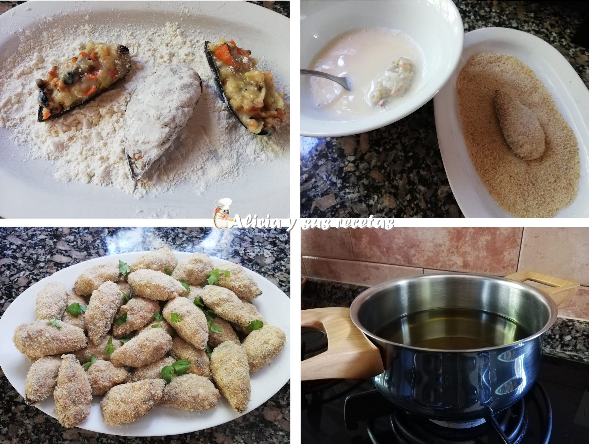 Se resume en hacer una bechamel a la que se le añaden como ingrediente principal mejillones que se han cocido previamente en vino de Jerez. Lo original de la tapa es que se rellenan las conchas con la bechamel. Después se pasan por harina, huevo y pan rallado y se fríen como las croquetas.