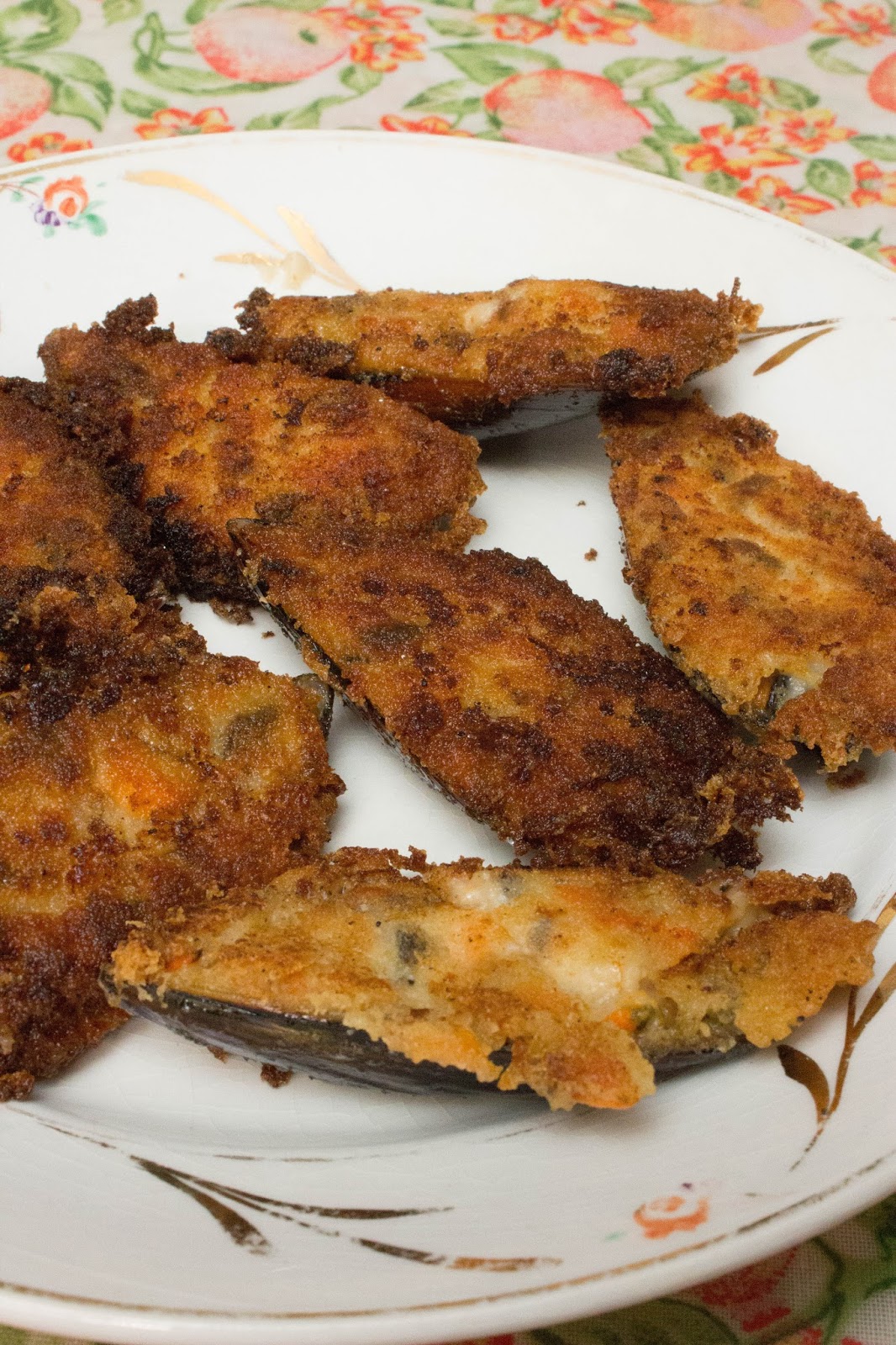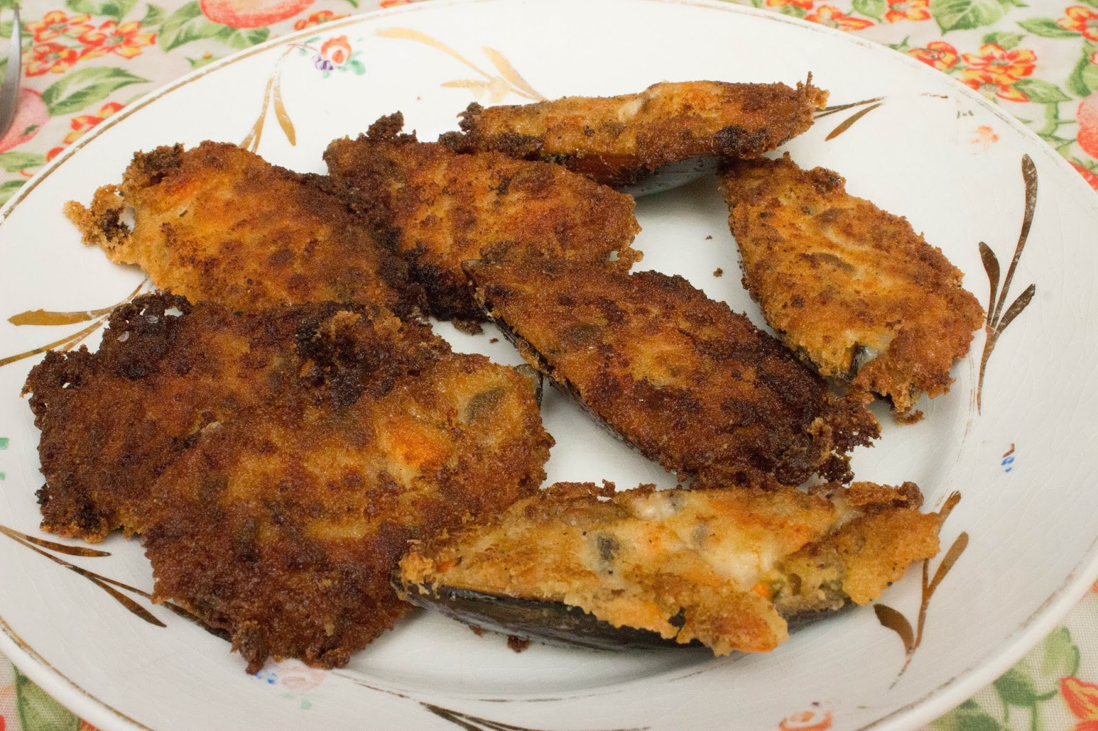 Luego se pasan los mejillones por pan rallado sin gluten o el que se desee.