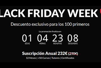 Como estamos todavía de Black Friday y a punto de arrancar el Cyber Monday OpenWebinars presenta un descuento especial de un 20% para aquellas personas que se suscriban a su oferta anual que ofrece acceso sin límites a todos los cursos disponibles. La oferta es por tiempo limitado, quedan cerca de 24 horas para su finalización y por 232€ representa un ahorro de 50€. ^_^