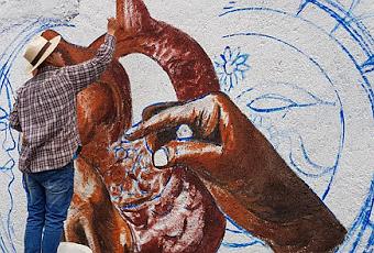 Durante ocho horas, los participantes unieron esfuerzos para culminar 30 murales en el andador,algunos con imágenes representativas de Metepec como el maguey, el árbol de la vida, la Tlanchana y los artesanos.