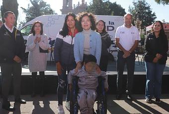 Durante la 12a entrega de lentes graduados, efectuada en las inmediaciones del Santuario de Guadalupe, se beneficio a 717 personas. En la misma jornada se entregaron sillas de ruedas, carriolas y bastones especiales, como parte de los apoyos funcionales destinados a mejorar la movilidad y autonomia de las y los beneficiarios.