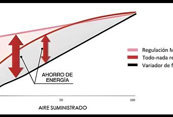 Los variadores de frecuencia son los dispositivos que mayor impacto pueden tener, pudiendo generar un ahorro de energía que oscila en el rango del 15-40% al reducir los picos de consumo durante el arranque y modular la velocidad del motor, buscando la velocidad más eficiente y óptima.