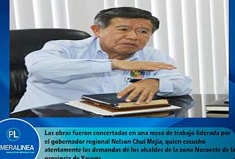 Las obras fueron concertadas en una mesa de trabajo liderada por el gobernador regional Nelson Chui Mejía, quien escuchó atentamente las demandas de los alcaldes de la zona Noroeste de la provincia de Yauyos.En su calidad representante de la provincia de Yauyos, el consejero Miguel Arbieto Elguera, saludó el apoyo del mandatario regional, lo que generará desarrollo y mayor productividad en los distritos de San Joaquín, Omas, Cochas, Huañec, Quinches, San Pedro de Pilas, Ayaviri y Tauripampa.En ese sentido, el titular de la región Lima dispuso que las maquinarias pesadas sumada al aporte de los gobiernos locales pongan en marcha el mantenimiento de los caminos que interconectarán los pueblos de Yauyos, así como se cristalizará la construcción de represas y canales de riego para el afianzamiento hídrico y evitar la escasez del vital líquido.