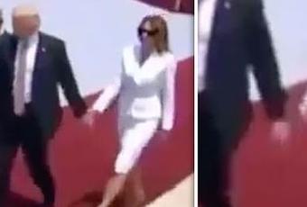 Al bajar del avión presidencial en el aeropuerto de Tel Aviv, mientras avanzaba por la alfombra roja acompañada del primer ministro israelí, Benjamin Netanyahu, y su esposa, Sara, el presidente le extiende la mano a Melania, que iba un poco por detrás de él, y Melania en vez agarrar su mano le responde con una palmada. Otro incómodo momento que no ha pasado desapercibido.