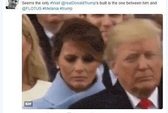 Este es el tuit concreto al que hizo "like" y que ha sido borrado. Muestra un pequeño vídeo de la primera dama sonriendo forzadamente a Trump con el texto: "Parece que el único muro que Trump ha llegado a construir es el que hay entre él y Melania Trump".