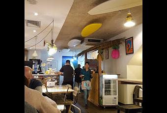 Interior localEs una hamburgesería muy coqueta, con decoración y espíritu surfero. Puedes ir combinando los ingredientes que quiere añadir a tu hamburguesa, contando incluso con opción vegana. Eliges una carne, el pan, los ingredientes. También puedes elegir ingredientes para sandwich o para ensalada, en este último caso, la base puede ser de pasta, arroz o lechuga.