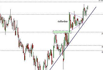 Se debe buscar más allá de agosto del 2011 para encontrar cruces en la cotización por encima de la zona citada en los 5.75 euros en Meliá Hotels. Por esta razón, la superación de dicho nivel probablemente generaría la entrada de dinero en el valor, con la correspondiente retirada de papel (cualquier posición abierta por los inversores a partir de agosto del 2011 se encuentra con plusvalías).