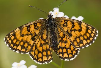 "Melitaea athalia es una especie distribuida por toda Europa y Asia hasta Japón. A pesar de tener una distribución tan extensa, en países como Alemania y Gran Bretaña se considera amenazada. En la Península Ibérica ocupa principalmente las zonas montanas del norte, centro y Sierra Nevada. Frecuenta prados, claros de bosque y terrenos abiertos con vegetación herbácea. Los adultos vuelan desde mediados de mayo hasta mediados de agosto, generalmente en dos generaciones anuales. El ejemplar de la imagen es una hembra."