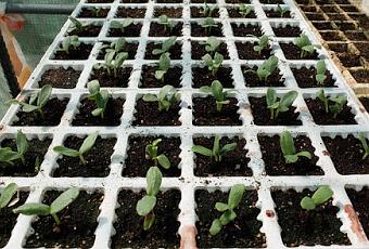 Para empezar, indicar que desde que tengo el huerto, he estado sembrando ambas variedades con diferentes resultados. El motivo es que son plantas propensas a adquirir enfermedades que son difícilmente controlables desde principios puramente ecológicos. Enfermedades como mildiu, oídio y sobre todo el fusarium y el verticilium, que afecta a las raíces de las plantas, son causas que originan grandes pérdidas en la cosecha cuando están en pleno desarrollo vegetativo y producción de frutos. Por ello, he tratado de buscar soluciones ecológicas para evitar estos daños, entre las que he encontrado productos en el mercado ecológico como Trichoderma harzianum. Es un hongo usado como fungicida en aplicaciones de suelo para el control biológico de diversas enfermedades producidas por hongos como el fusarium. Es un producto que se encuentra en el mercado con precios bastantes elevados, pero que he querido adquirir para conocer sus resultados personalmente. La siembra de los melones en semilleros la realicé el 12 de febrero del presente año, su germinación fue bastante buena y las tuve dentro del pequeño invernadero hasta mediados de marzo.