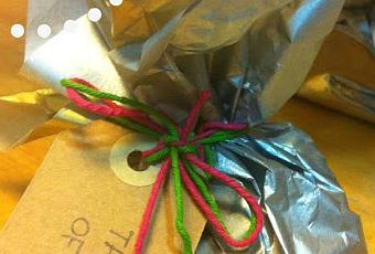 Envuelto en papel de seda plateado y dorado