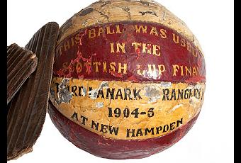 Balón de fútbol escocés en cuero pintado, 1904. Utilizado en la final de la copa escocesa. Precio de salida: 4.000 EUR.