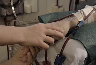 imagen perteneciente a Lola Montalvo (C)Esta vez no voy a contar una historia inventada basada en algo real.Esta vez la historia es completamente real... sucedió el día 27 de abril.Esa mano conectada a las líneas arterial y venosa de un sistema de hemodiálisis pertenece a la persona a la que cuido y a la que le ayudo a dializarse 5 días por semana. Las otras dos manitas son de dos pequeños ayudantes.