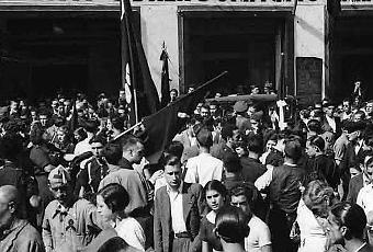 Agosto de 1936. Local incautado en Barcelona. Fotografía de Agustí Centelles. Fue utilizada en la exposición del 75º aniversario de la fundación del POUM, un partido atacado por los fascistas y atacado por los estalinistas, la experiencia revolucionaria más importante de la Guerra Civil, que perdieron y perdimos todos. Que no nos borren la memoria de un tiempo que triunfamos, que creíamos en otro Mundo mejor. Fuente: Fundación Andreu Nin.