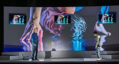 Quienes fuimos testigos del excelente espectáculo teatral aplaudimos, además de la labor actoral, la estupenda puesta en escena de Beatriz Jaén. Ideó la directora una escenografía en la que la música, los efectos sonoros, un decorado minimalista en el que las imágenes videográficas replican, duplican e incluso triplican, lo que en persona y sobre el escenario realizan los actores. Una cámara de video en manos de unos u otros actores es testigo mudo de las confesiones de Adriano, hombre poderoso donde los hubiera, pero en definitiva, y de ahí la intemporalidad del mismo, un hombre. Juega la puesta en escena con la trasposición del emperador romano desde su mundo antiguo al nuestro actual en forma de presidente de una nación. Durante los 90 minutos de la representación se presenta en escena la idea de la comunicación a la Nación por parte de su Presidente de algo trascendental: su renuncia al cargo y el designio de su sucesor. Los focos, los micrófonos, los maquilladores, los asesores políticos, la cámara de video o televisión... constantemente están evolucionando alrededor de este hombre que en medio de esta vorágine recuerda su vida ahora que se siente al final de la misma.