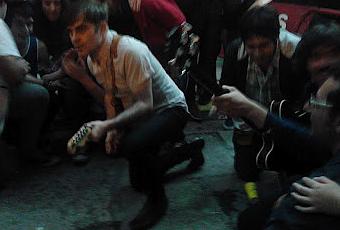 “Memorias de pez”DOCTOR EXPLOSION+TERAPIA DE CHOQUE+SOLDIER+RANAS BLANCASPlaza Feijoo, Oviedo.Sábado 15 de septiembre de 2012.Una de las más viejas leyendas que recorre el mundo del rock es la que habla de esos músicos con tan poco bagaje de escuchas que sus influencias no resultan evidentes sino ridículas. Músicos de enorme técnica pero de gustos raquíticos representan una especie en sí mismos, torpes y egocéntricos, que descubren la cuadratura del círculo que cualquiera con un mínimo de afición ya disfrutó de párvulos. Algo así podría ser aplicable a los jovencísimos Ranas Blancas, que se trajeron no sólo a sus padres sino a sus compis de instituto, para desarrollar un show que evidenciaba una técnica portentosa, sí, pero una flagrante anorexia creativa. Mucho más ilustrados en sus aficiones, Soldier anunciaron su candidatura a la final con un metal contundente y sin fisuras. Luego vendrían Terapia de Choque, un cuarteto que llamaba la atención por sus extravagantes pintas: un teclista con pajarita, el guitarra con sombrero dylaniano, la hermosa cantante… Tardaron en encontrar el sonido, algo que consiguieron en un tramo final donde expusieron virtudes que se salían de la norma. Aquí sí había gente con muchas (y buenas) escuchas. Un paso previo que debería ser esencial antes de saltar a un escenario. Claro que lo mismo ocurre con arquitectos que desconocen la historia del arte y nadie dice nada.Con Jorge Muñoz Cobo esto no ocurre. Su memoria pervive fresca, evocando minutos antes de su actuación el primer concierto de Doctor Explosion en Oviedo hace más de dos décadas, en un local de la calle Cimadevilla llamado La Catedral. Bien respaldado por un enorme bajista como Pablo Álvarez que ha hecho olvidar al carismático Félix y un baterista ocasional como el increíble Wilón –¡dos ensayos y la maquinaria funcionaba como un reloj!- Doctor Explosion desgranaron canciones de su último trabajo y clásicos como el “Drácula yeyé” a celebrar a la mayor gloria de la juerga y del rock´n´roll. Mezclándose con el público, vibrando con el contacto de la gente, transmitiendo energía, buen rollo, vitaminas vitales para estos días de dolor. Tiempo para dedicatorias también, al añorado Chanel de Poti, a unos tiempos que se han ido pero que perviven con luz propia y se transmiten a otras generaciones gracias al impulso del amor a una música que el trío asturiano engrandece con cada acorde. MANOLO D. ABAD Foto del baño de multitudes de Jorge:CHUS CABAL
