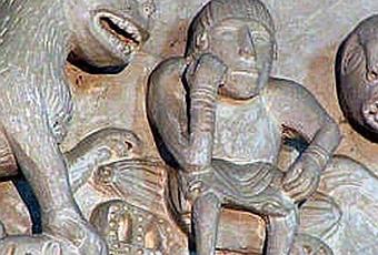 Capitel románico; probablemente, Daniel en el foso de los leones (detalle).