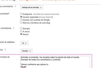 Tenemos dos maneras, si queremos que el mensajito salga encima de la cajita para comentar, solo tienes que ir a Configuración, Entradas y comentarios y veremos que abajo de todo dice: