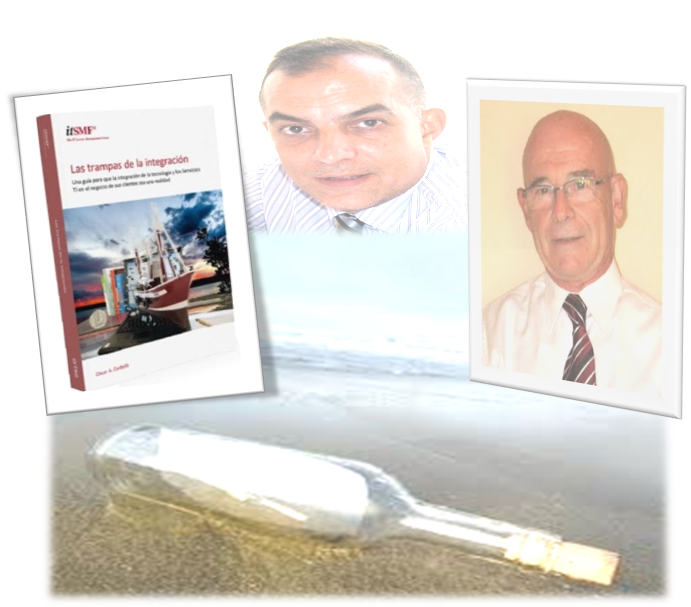 En el Apéndice B, páginas 242-244 del libro "Las Trampas de la Integración" aparece una bitácora llamada "Mensaje en una pequeña botella" en la que describo mí sentir, mi pasión, mí visión - en definitiva mis sueños profesionales - que espero algún día hacer realidad, que me produjo y provocó la lectura de aquella pequeña carta de navegación, de aventura, de aprendizaje, de travesía, de conocimiento - recomendable para todo tipo de tripulantes de una nave TIC - que el autor -Óscar Corbelli - me concedió para que le echara un vistazo, hace casi un año."Me encuentro en la isla Reflexión situada en la parte central del Archipiélago de la Estrategia, cuya posición relativa hace que se visione con precisión el resto de las islas y los movimientos de las diferentes flotas que surcan sus mares.