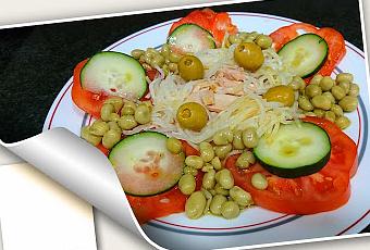 Hoy os traigo un menú con MAHESO para esta semana santa.Nuestro primer plato consiste de una ensaladade tomate con habitas y ventresca.INGREDIENTES PARA NUESTR ENSALADA:2 tomates para ensalada1 pepino2 latas de ventresca en aceite de oliva1 botecito de apio rallado1 botecito de habitas mini baby fritas en conservaUnas olivas rellenasSal y aceite de oliva virgen