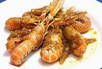 ENTRANTE: cigalas en salsa.