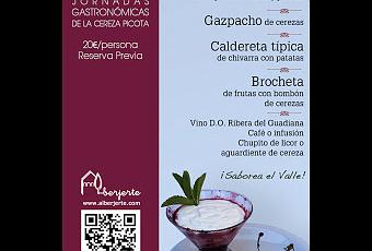 Nuestro restaurante, Restaurante Alberjerte, participa un año más en las VIII Jornadas Gastronómicas de la Cereza Picota con un económico menú que aúna la tradición con la modernidad. El menú se compone de: