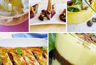 Plato principal Hojaldre de pimientos, champiñones y espárragos