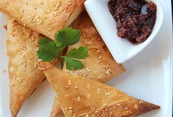 - - Las horneamos unos 10 minutos a 180 grados , o hasta que este dorada la pasta filo.
