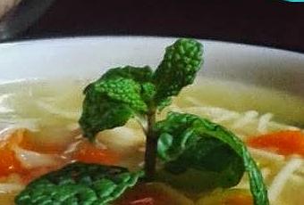 2.- Le quitamos la piel al pollo, lo introducimos en la olla. Lo rehogamos unos minutos. Llenamos la olla de agua hasta cubrir la carne y las verduras. Llevamos a ebullición y bajamos la temperatura del fuego. Cocinamos a fuego medio 30 minutos. Después añadimos los fideos y el bote de alubias, lavadas y escurridas. Cocinamos 20 minutos más. apagamos el fuego,sacamos los muslos y desmenuzamos en trozos, retiramos los huesos. Los añadimos nuevamente a la olla. Dejamos reposar unos minutos. Servimos caliente con una ramita de hierbabuena.
