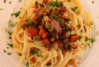 LUNESTallarines con verduras y jamón