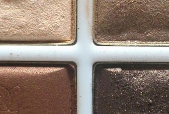 Estas son las sombras en cuestión, se que están un poco tocadas pero eso es porque en el viaje no aguantaron enteras las pobres. Los colores son preciosos y tienen una pinta como de ser minerales y de pigmentar una barbaridad pero cual es mi sorpresa al meter el pincel para hacerme un look y ver que nada de nada.