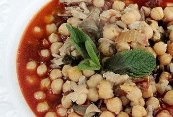 - Cuando hierva, añadir ½ kg. de garbanzos (puestos a remojo desde la noche anterior en agua caliente con sal). Cerrar la olla y dejar cocer unos 35´.