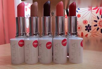 Labiales de la gama Mate de MUA (solo swatcheados): de iz. a der. (Pouty pink - Totally nude - Wild berry - Peachy keen - Scarlet siren) 1€ unidad. Todos por 4€