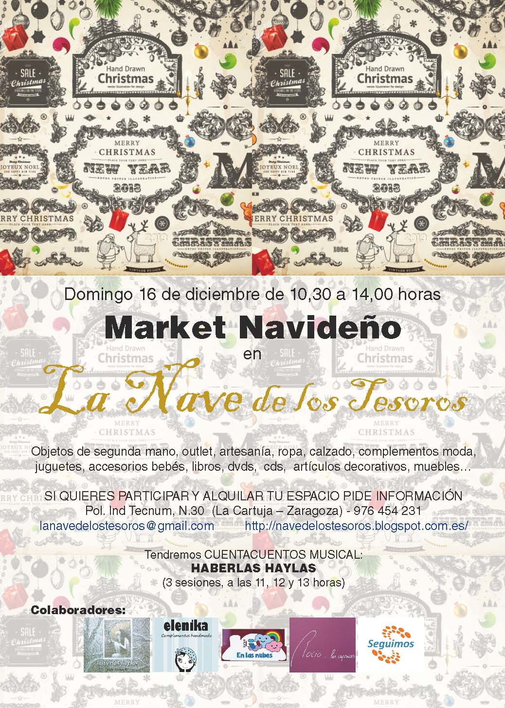 En esta edición contarán con las creaciones hechas a mano de ELENIKA, la elegancia del outlet de ROCÍO LES CAPRICES con nuevas prendas, los caprichos para los más peques de EN LAS NUBES, los libros y cómics de David y Mónica, y muchos más. Además, cuenta-cuentos musical para todos los públicos "Haberlas haylas", con 3 pases para que no te lo pierdas: a las 11, a las 12 y a las 13 horas.INFORMACIÓN: [email protected]http://navedelostesoros.blogspot.com.es/976 45 42 31Acércate el domingo al Pol. Ind Tecnum, N.30 - Dentro del polígono de La Cartuja (La Cartuja – Zaragoza)